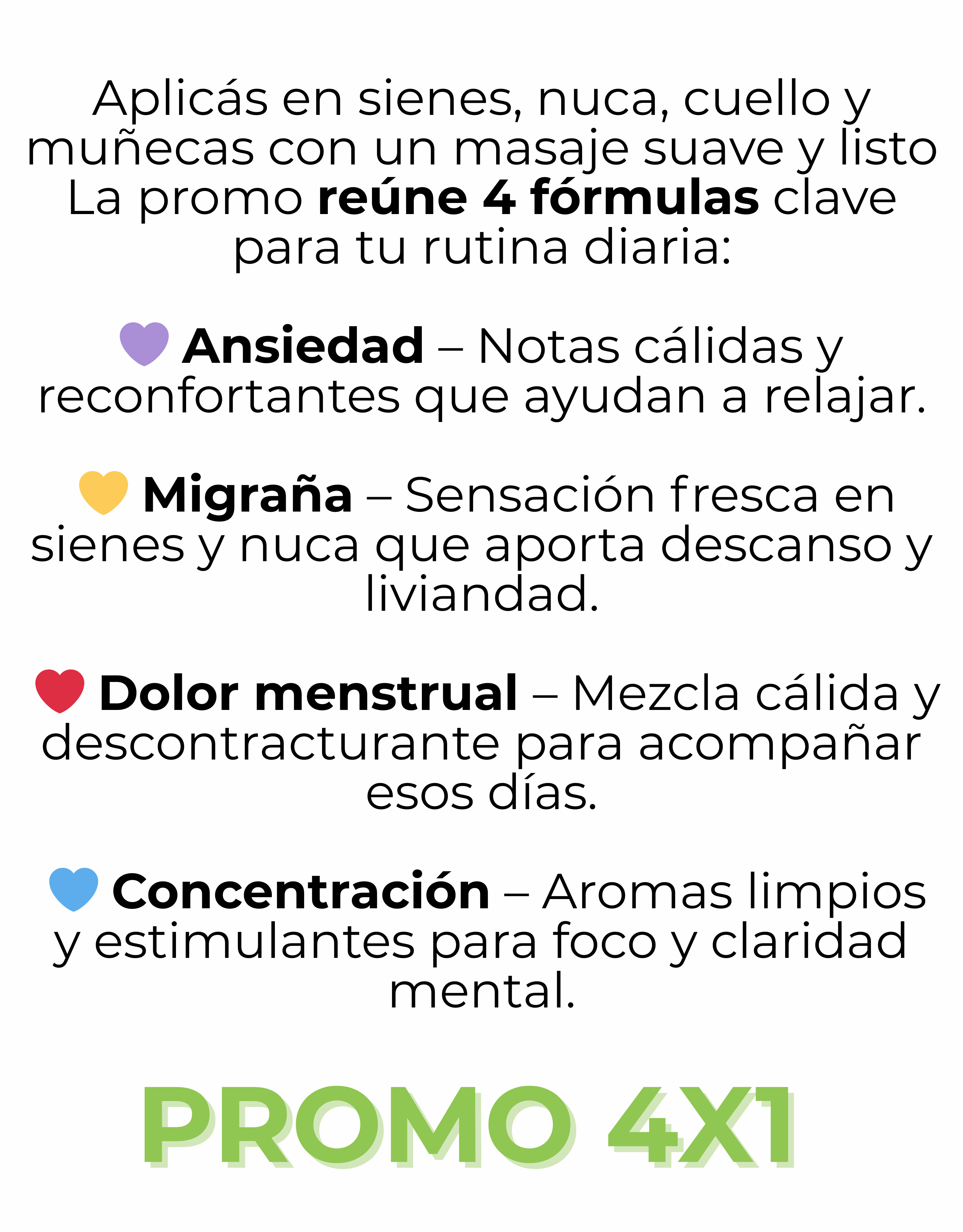 - > Combo 4En1 Roll-On – Ansiedad, Migraña, Dolor Menstrual y Concentración.